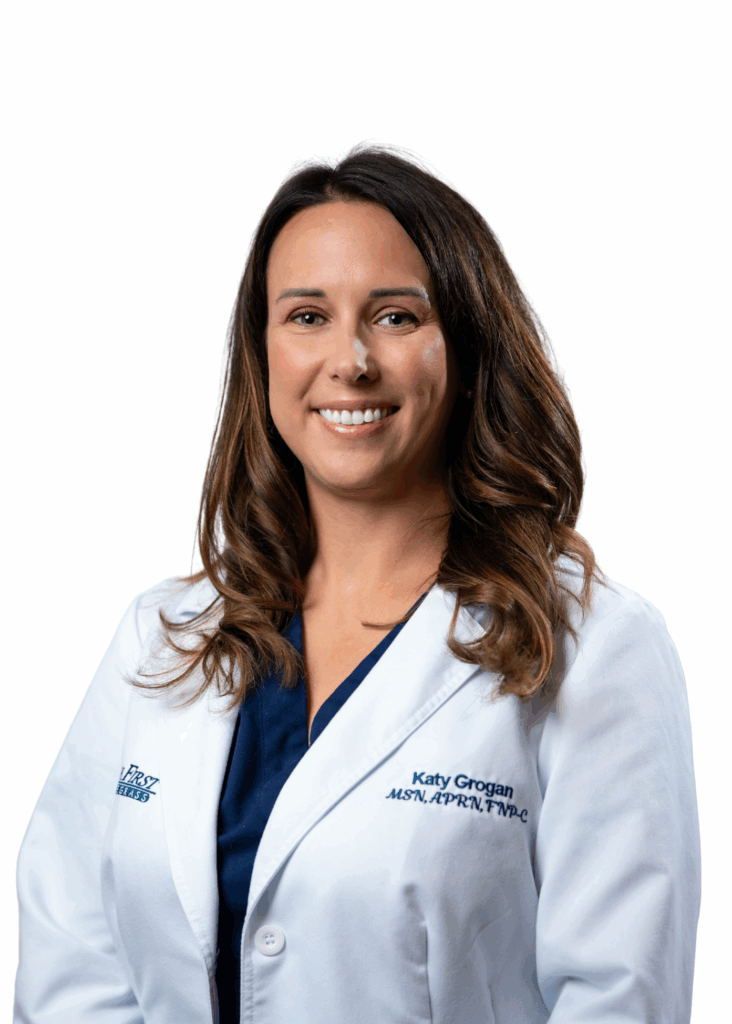 Hi, I'm Marikate Grogan, APRN, but you can call me Katy! Seeing our pediatric patient population at HealthFirst makes me feel so grateful because we truly do make a difference in their lives by offering meaningful care. On my time off, I love to read, hang out with my family (and my dog), and going on Jeep rides!